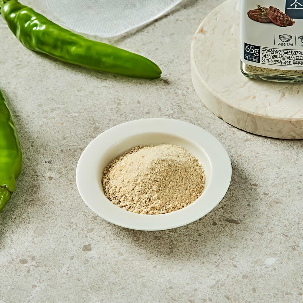 구이용 소금은 밋밋한 고기의 육즙과 육질을 제대로 살려 맛의 균형을 잡으며 풍미를 더해 줍니다.