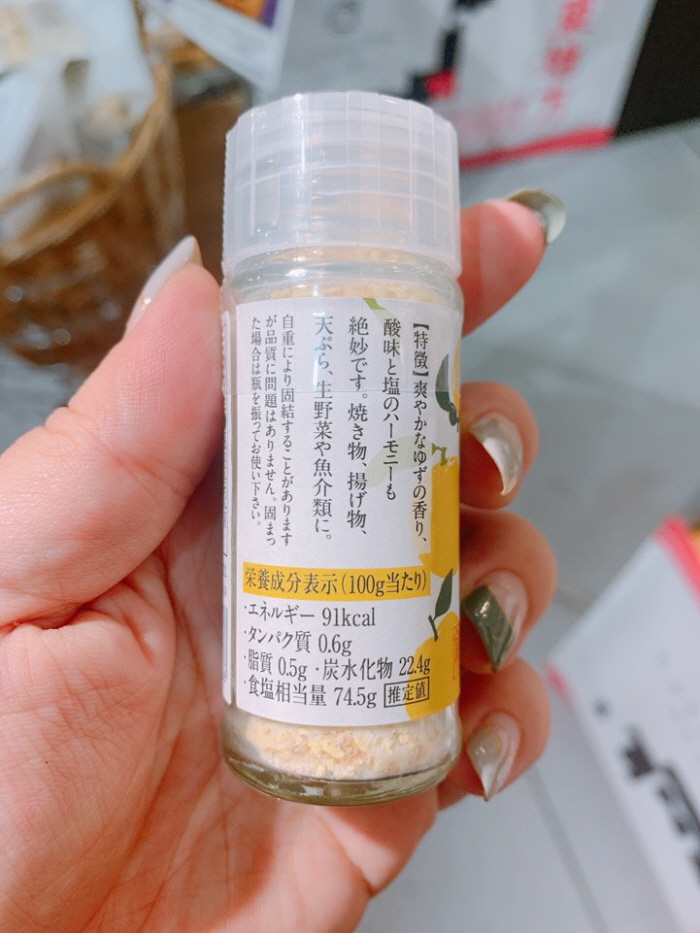 소금(일본제조), 유자껍질, 설탕, 레몬과립/산미료,
