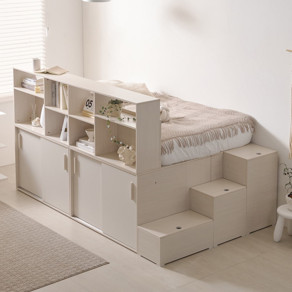 | 품명 | 로암 슈퍼싱글 파티션 수납장 책상 침대 프레임 세트 SS (2color) |