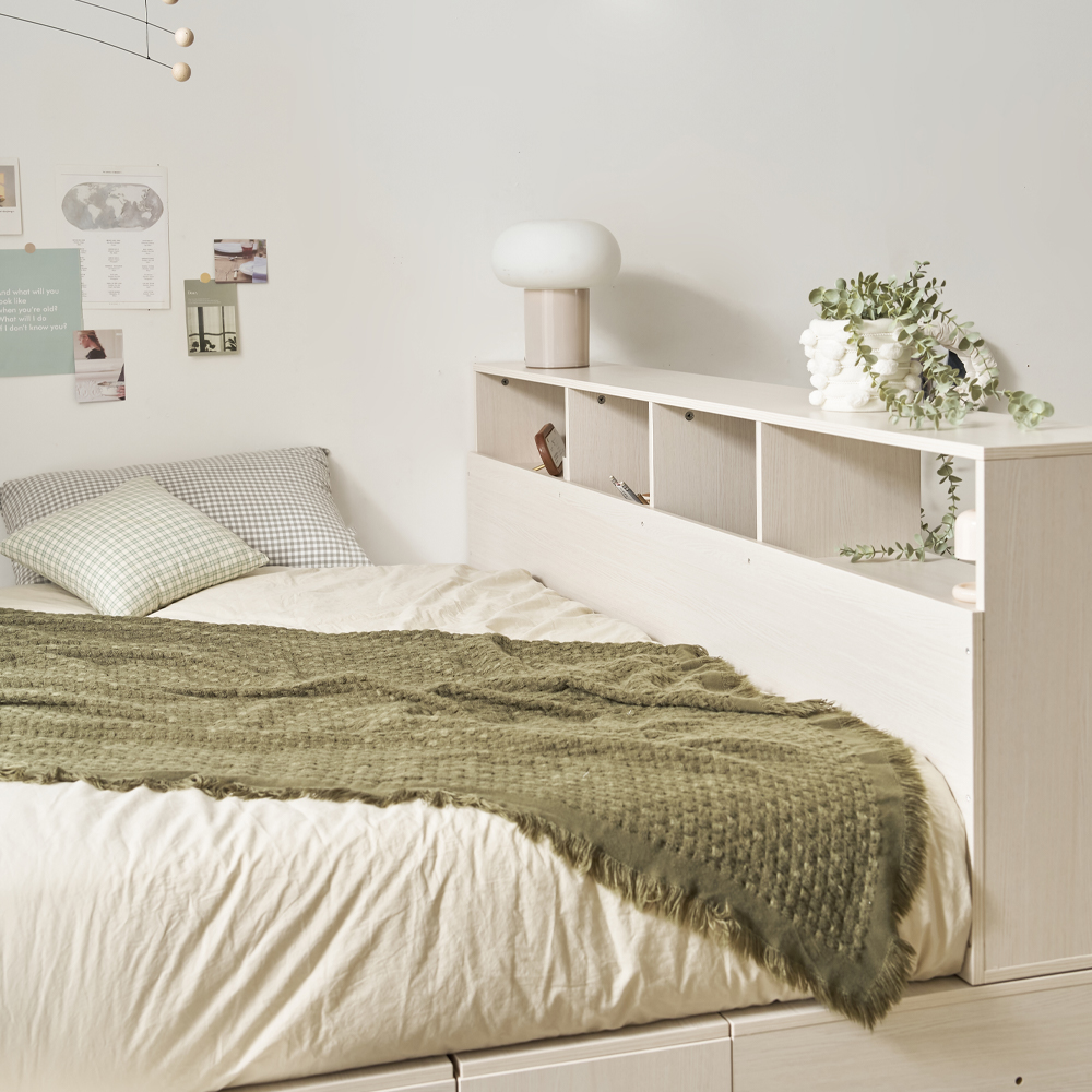 | 크기 | 침대프레임 : W2010 x D1400 x H693mm / 파티션 책장 : W2010 x D250 x H600mm |