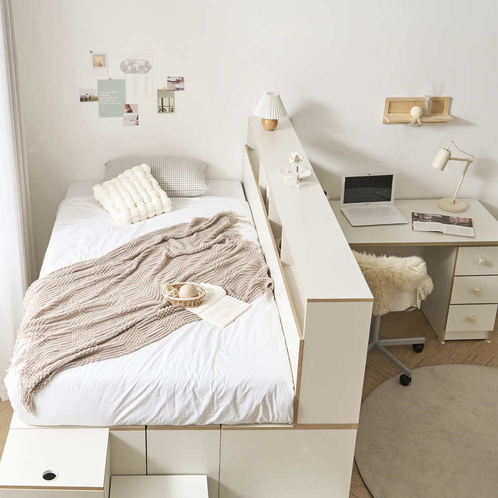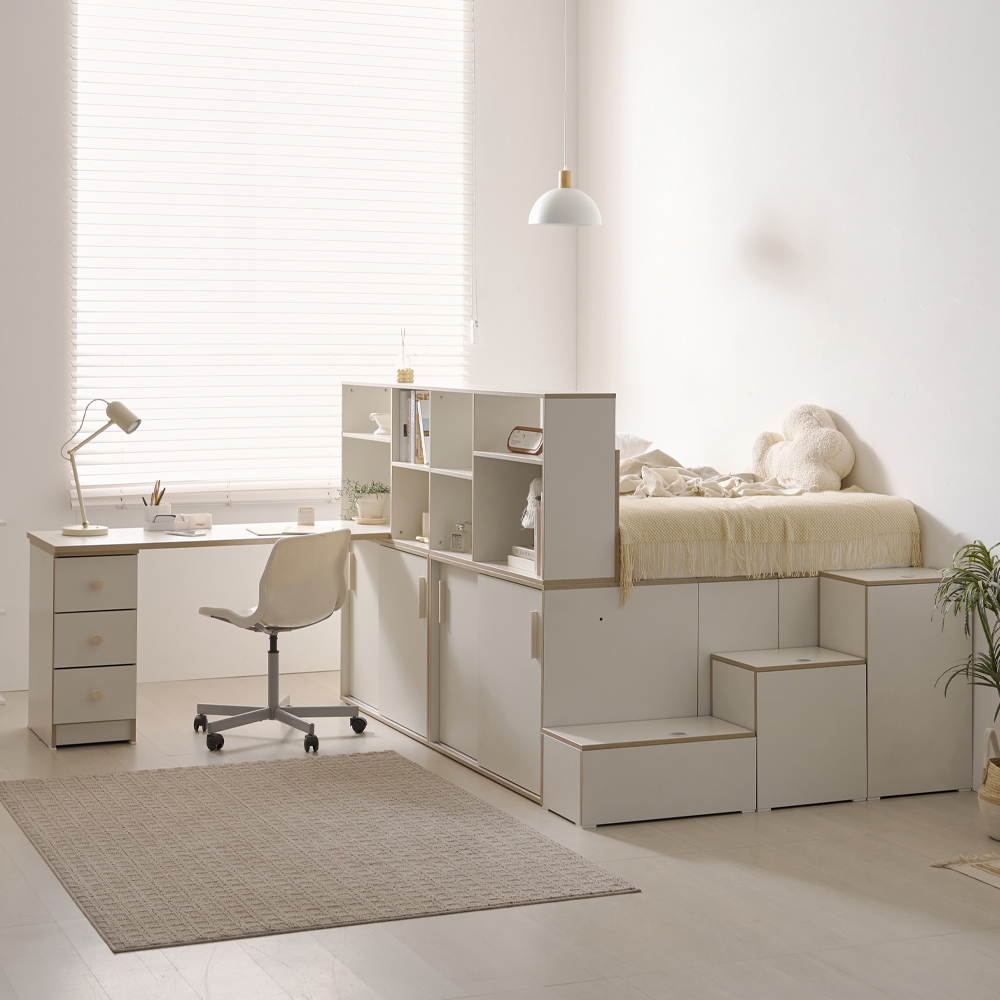 | 품명 | 로암 슈퍼싱글 파티션 수납장 1500 책상 침대 프레임 세트 A형 (1color) |