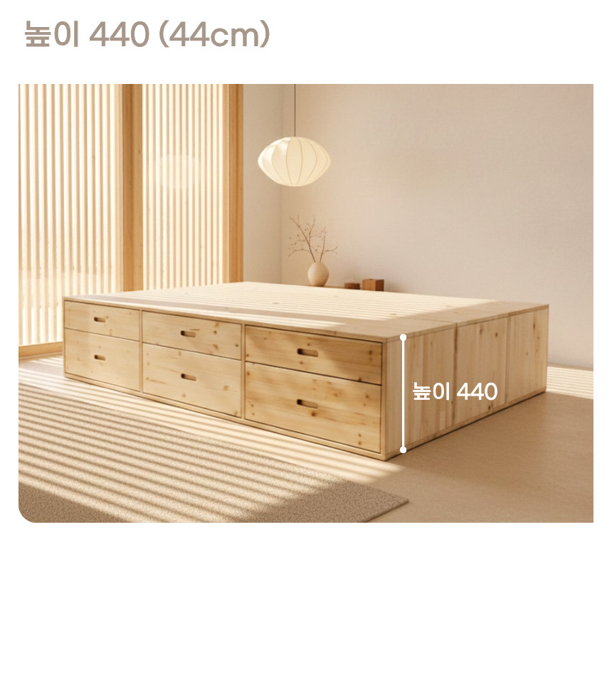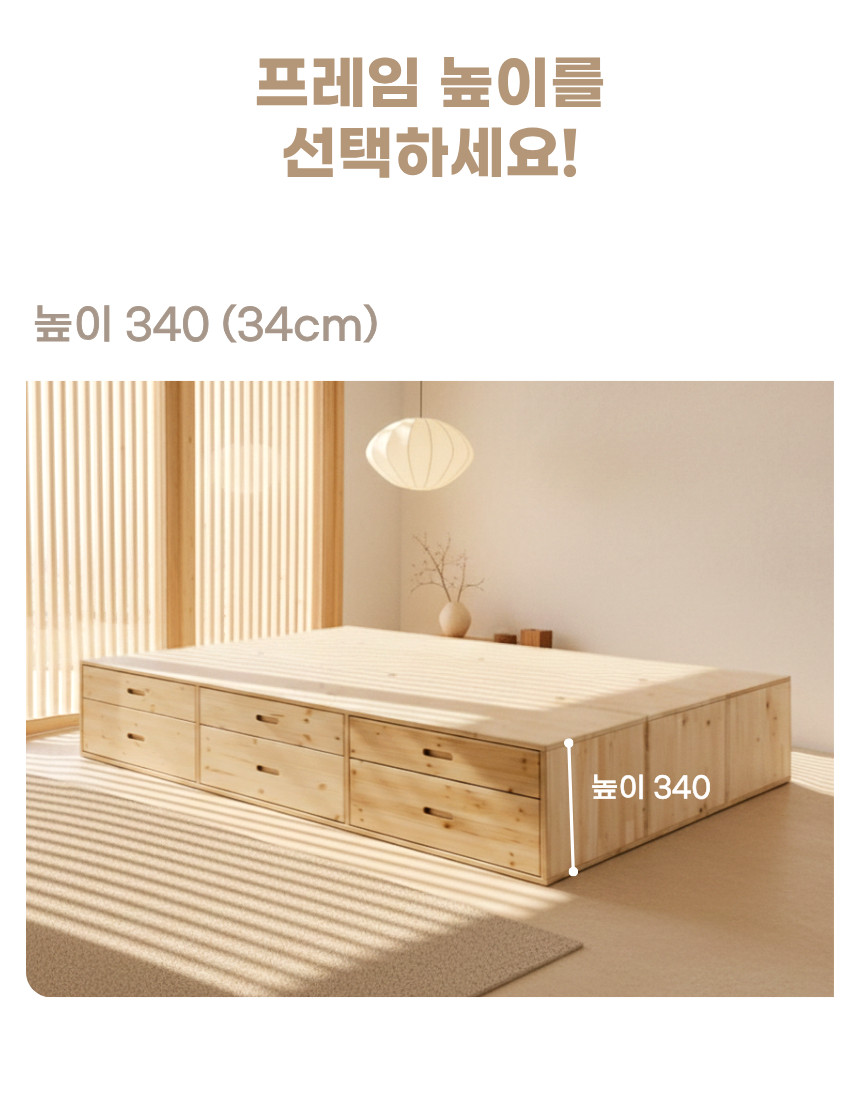 | 크기 | 낮은 하단 프레임 : W 1100 x D 2020 x H 340 (± 3%), 높은 하단 프레임 : W 1100 x D 2020 x H 440 (± 3%) |