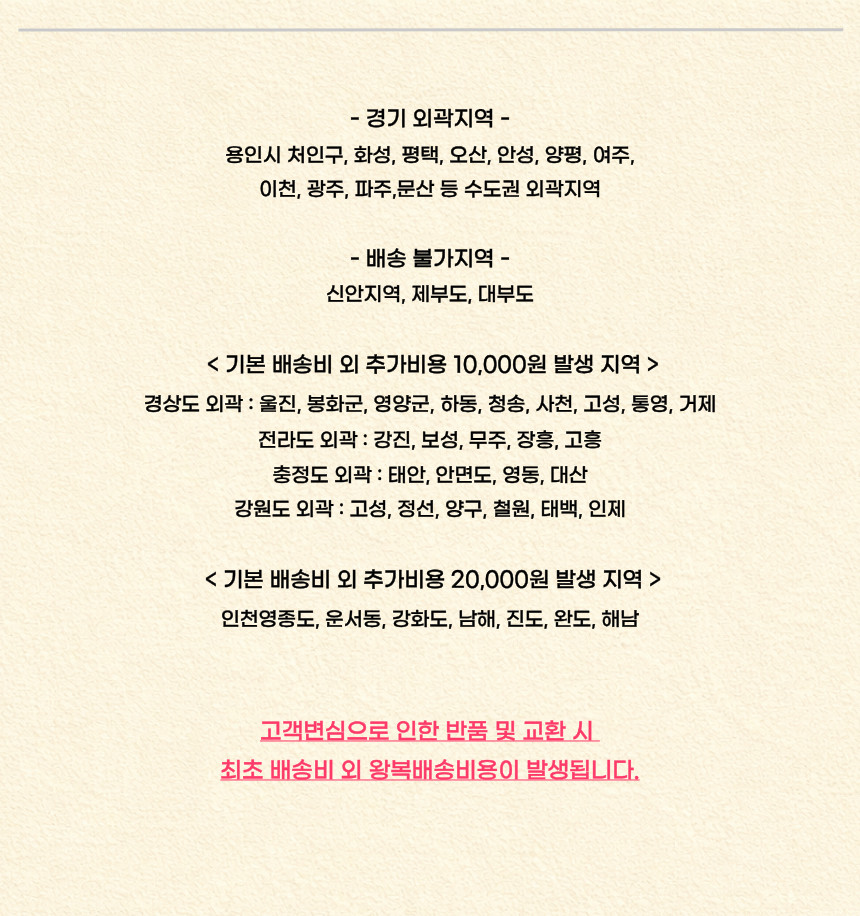 | 교환배송비 | 고객센터(01025558184)로 문의해주세요. |