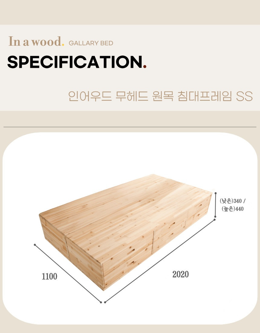 | 품명 | 인어우드 원목 무헤드 침대프레임 ss |