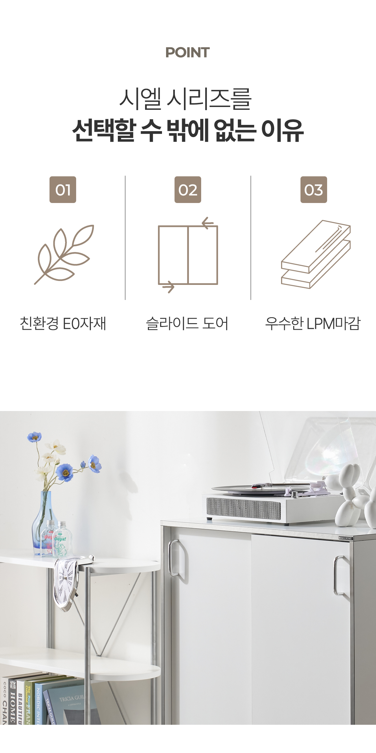 | 주요 소재 | E0 LPM, PB, E0 ABS 실버엣지, 스틸 손잡이, PVC 등 |