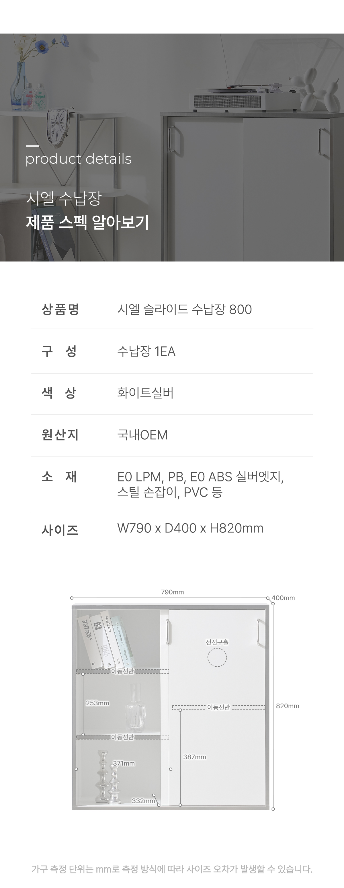 | 품명 | 시엘 미닫이 수납장 원룸 슬라이딩 수납장 800 (1color) |