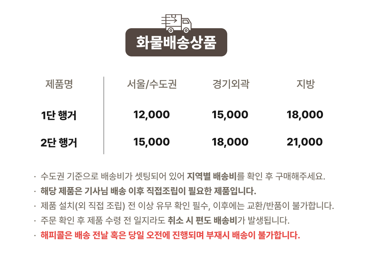 | 배송·설치비용 | 화물배송(무조건 착불배송), 상품페이지 참조 |