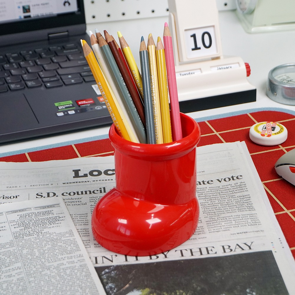 빨간장화 신발모양 연필꽂이 정리함